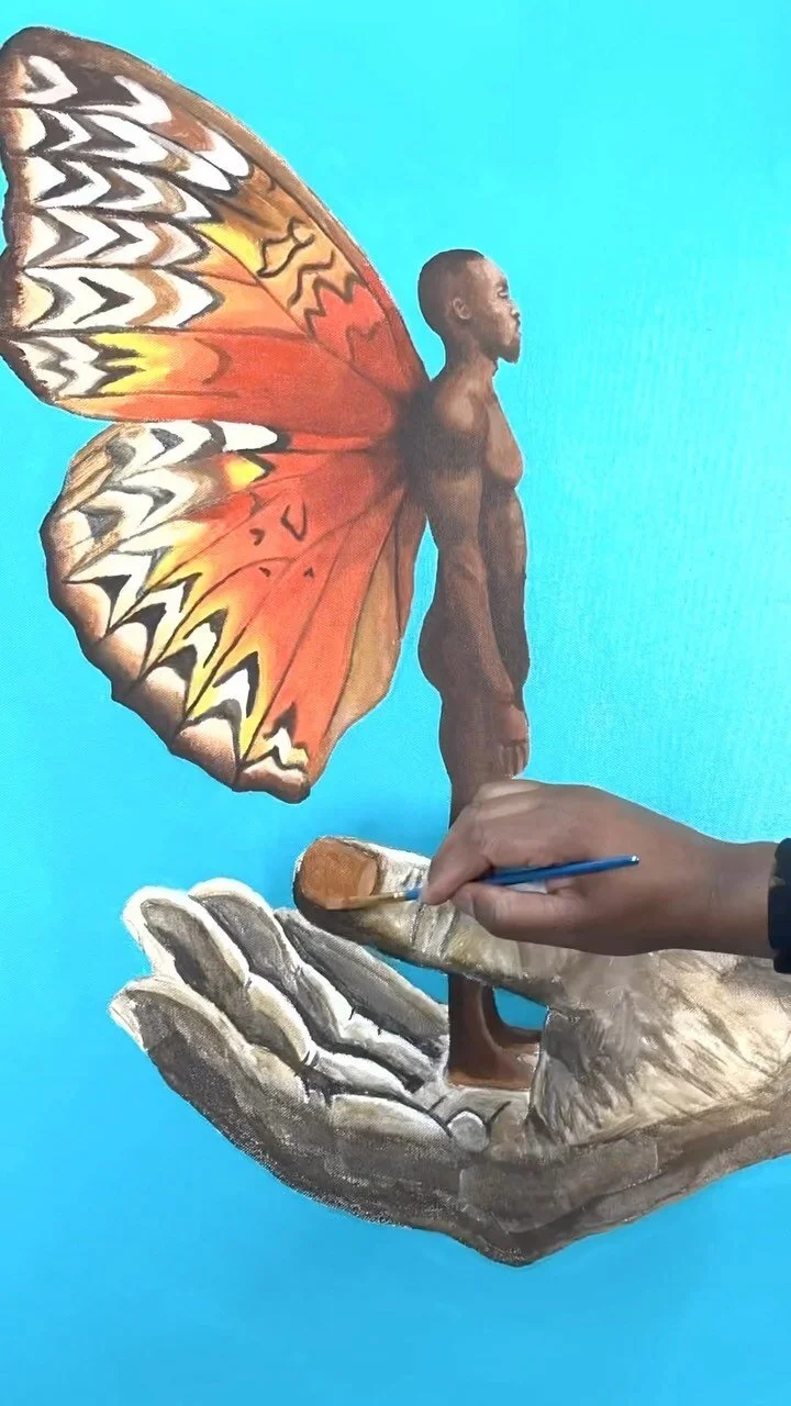 Our painting invites the viewer to contemplate the journey of transformation and renewal. The woman in the painting is depicted in the act of entering a cocoon, symbolizing the process of metamorphosis. As she emerges from the cocoon, she transforms into a beautiful butterfly, representing the emergence of a new and transformed self.